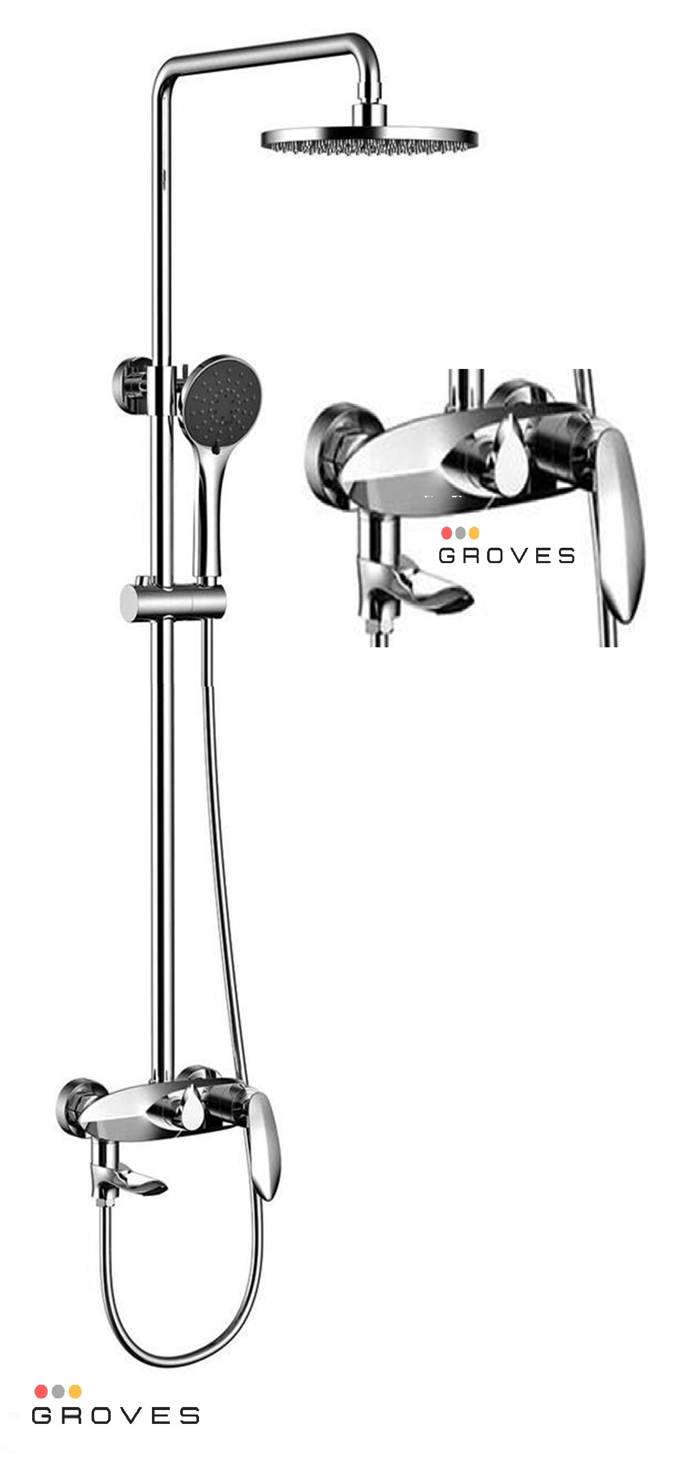 - Bộ sản phẩm gồm: 1 củ sen có vòi xả phụ, 1 dây dẫn nước, 1 tay sen, 1 bát sen, 1 ống đứng & các đầu ốc đi kèm.